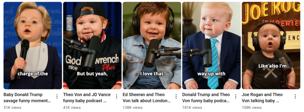- Comedy & Contrast: Babies in adult roles (like hosting podcasts) create a humorous and engaging contrast.